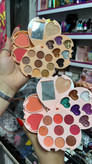 محتویات پالت چرخشی شامل 6 سایه گلیتری، 9 سایه مات و 2 عدد رژگونه و یک عدد هایلاتیر می باشد. در دو طیف رنگی ارائه شده است که یکی از پالت ها شامل رنگ های نود و دیگری شامل رنگ های روشن و زیبا می باشد