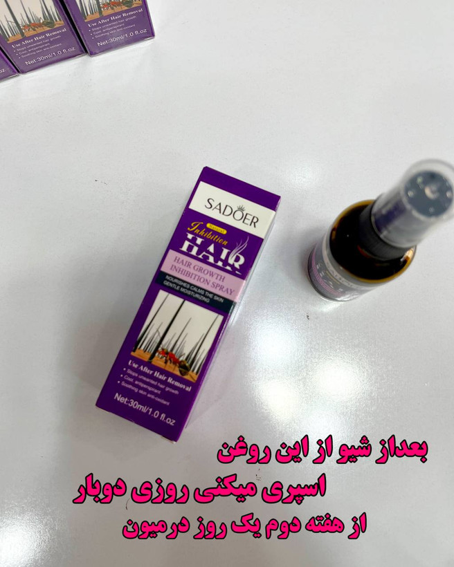 اسپری کاهش دهنده رشد مو اسطوخدوس سادور قابلیت کند نمودن رویش و رشد مجدد موها، نازک نمودن قطر💞