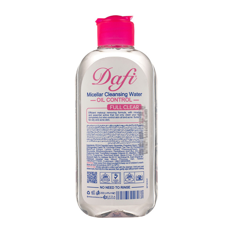 میسلار واتر دافی مدل Oil Control یک محلول پاک کننده روزانه برای پوست چرب و مختلط است که آرایش و آلودگی را به نرمی از سطح پوست برمی دارد. ترکیب هیالورونیک اسید با ویتامین های A و B5 در کنار تمیز کردن، رطوبت و تازگی پوست را حفظ می کند و حس خشکی ایجاد نمی شود. روغن درخت چای و زینک PCA به تنظیم چربی و کاهش نمای جوش های سرسیاه و سرسفید کمک می کند.