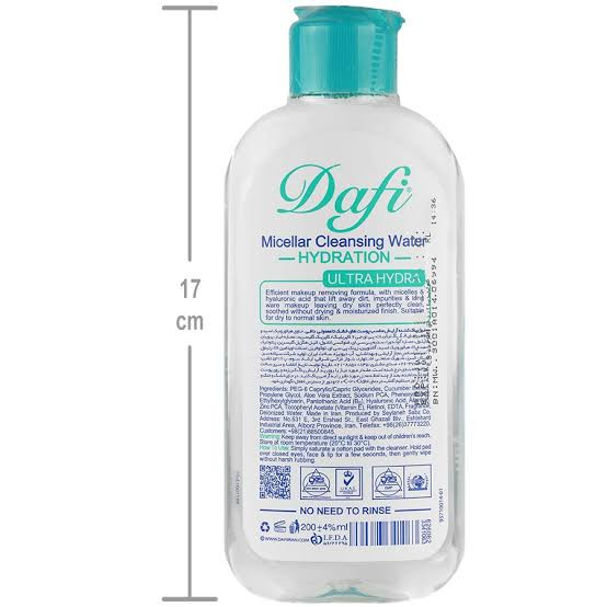 میسلار واتر دافی ویژه پوستهای خشک تا نرمال، آرایش روزانه و آلودگی را به نرمی پاک میکند و احساس طراوت میدهد. ترکیب هیالورونیک اسید و ویتامینهای E و B5 به حفظ رطوبت و تقویت سد دفاعی پوست کمک میکند و حس کشیدگی را کم میکند. بعد از پاکسازی، صورت برای ادامه مراحل مراقبت آماده است.