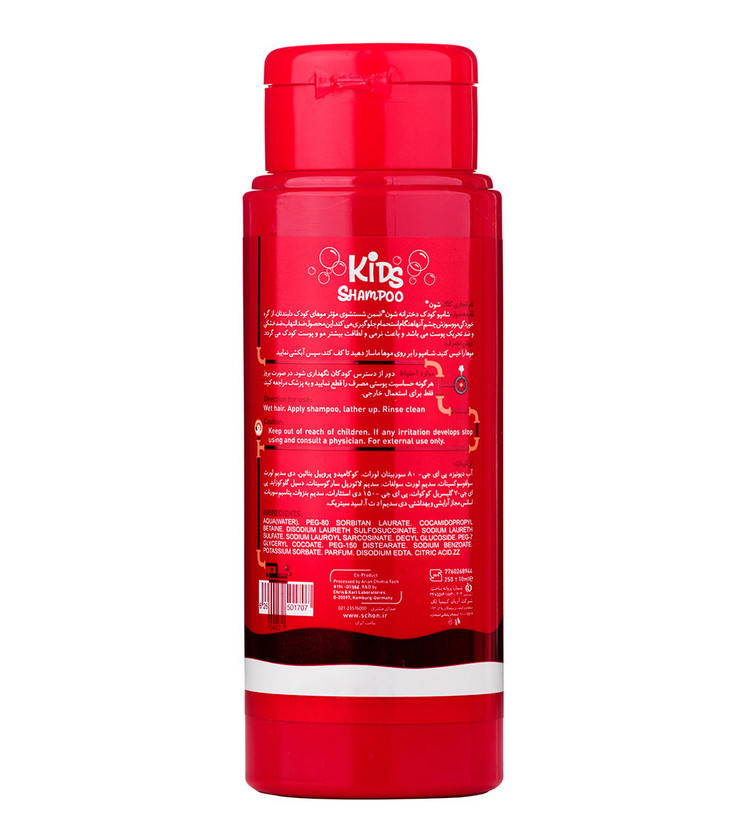 شامپو کودک دخترانه شون، یک محصول مناسب برای تمام کودکان دختر بوده که طبق پوست و مو حساس کودک فرموله شده است. این شامپو هیچ آسیبی به موی کودک وارد نمیکند و علاوه بر تمیز کردن مو، باعث نرم و لطیف شدن آن نیز میگردد. با استفاده از این شامپو، دیگر موهای کودکان در هم گره نمیخورد و موجب ناراحتی کودک نمیشود. همچنین لازم به ذکر است که این شامپو فاقد سولفات و سایر مواد شیمیایی مضر است. شامپو کودک شون حجم 250 میل دارد و شما میتوانید آن را آنلاین از طریق فروشگاه اینترنتی خانومی خریداری کنید.