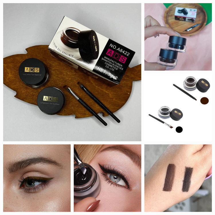 ست دو قلو خط چشم و ابرو ژله ای کاسه ای ADS / رنگ مشکی و قهوه ای مات / با رنگدانههای غنی / ضد آب / ماندگاری فوق قوی 24 ساعته / با قابلیت پوشانندگی بالا / دارای بافت ژلهای و جامد / بدون پخش و ریزش / با ۲ قلم مویی