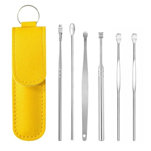 استفاده از گوش پاک کن های پنبه ای و پلاستیکی و یکبار مصرف به دلایلی از قبیل شکسته شدن داخل گوش،حساسیت های پوستی و زخم کردن داخل گوش ،گران بودن و … منسوخ شده و نسل جدید آن همین گوش پاک کن های فلزی می باشد که این ابزار پاکسازی گوش یک پکیج کامل از هر انچه که بخواهید برای تمیز کردن داخل گوش های شما می باشد ،این پکیج 6 تکه دارای انواع ابزار از نوع قاشقی،فنری، چرخشی و … می باشد که همگی در یک کیف شیک چرمی با کیفیت گرد هم امده اند .